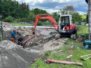 Popis: Vrtačka na řízené protlaky je moderní zařízení, které umožňuje dělat výkopové práce s minimálním zásahem do terénu. Díky hydraulickému výkonu, které pohání potrubí, dokáže protlačit zeminu skrz. Tím vytváří tunel pro umístění např. elektrického vedení.